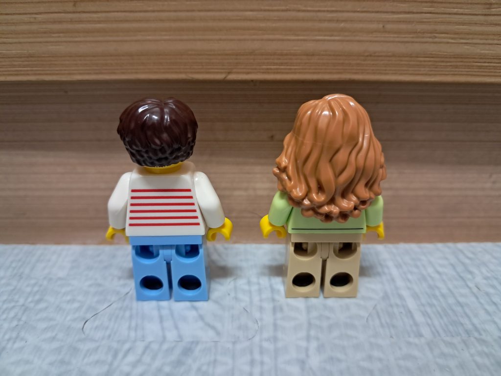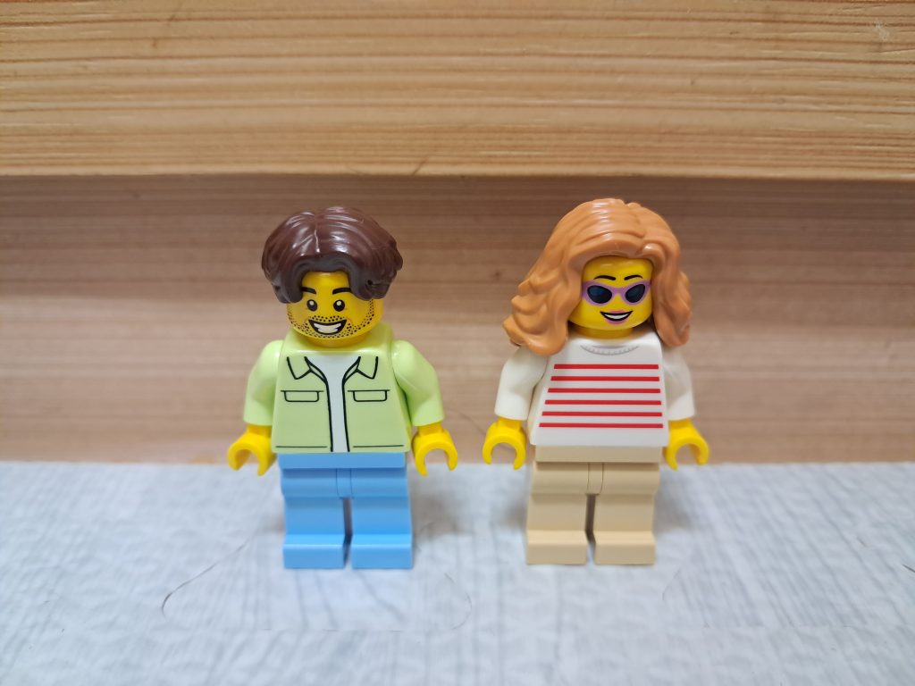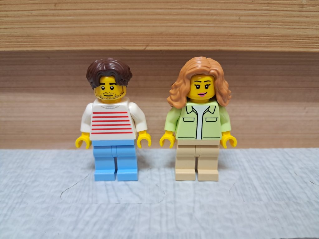 The minifigures in this set include a man and a woman, both with two interchangeable expressions. There are patterns on the front and back of the top. The clothes are quite neutral in shape and can be matched with each other.